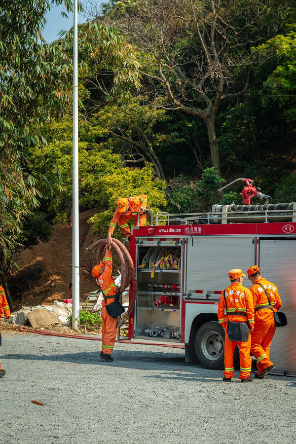 演练模拟突发森林火灾为背景,从发现火情、统筹指挥、集结队伍、现场扑救、火场清理、无人机监测等方面进行了全流程实战演练。演练现场出动了水泵、水罐车、打火棍等扑火工具,快速、有效地进行了模拟扑救。广州客天下景区人员积极配合应急演练,在实战演练过程中充分了解和学习组织救火、工具使用、现场扑救等技能。