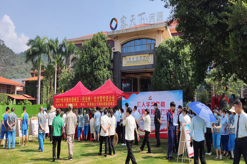 为进一步增强人民法律意识和法制观念,提高依法维权的能力和法律素质,2021年9月9日上午,源城区司法局主办的2021年河源市源城区《民法典》法治宣传进企业活动在河源客天下景区顺利开展。