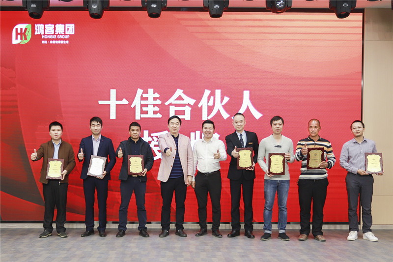 最后,鸿客集团授予卓建集团客天下醉蝶谷绿色庄园总经理谢志强、深圳红犇资本管理有限公司董事长余健昌、广州市涟岸生态旅游咨询有限公司法人代表甘志成等10位项目合伙人“十佳合伙人”称号。蔡鸿章董事长代表集团对各位合伙人一直以来的支持与合作表示诚挚感谢,对集团与各合伙人在未来的合作与发展寄予殷切期望。